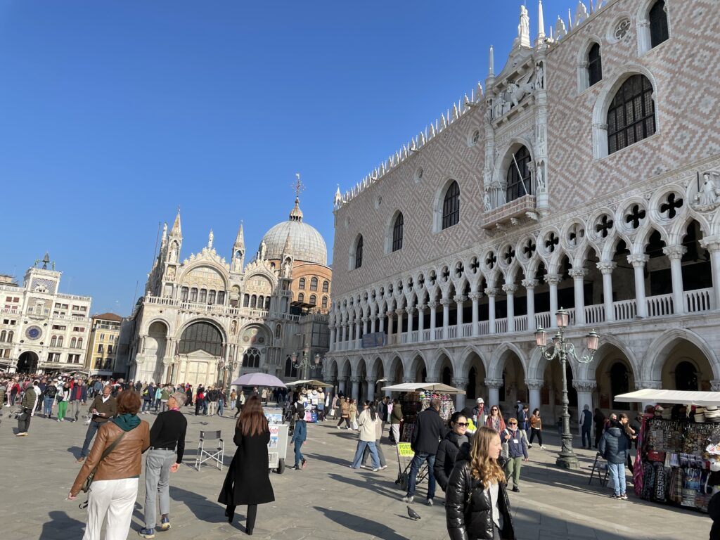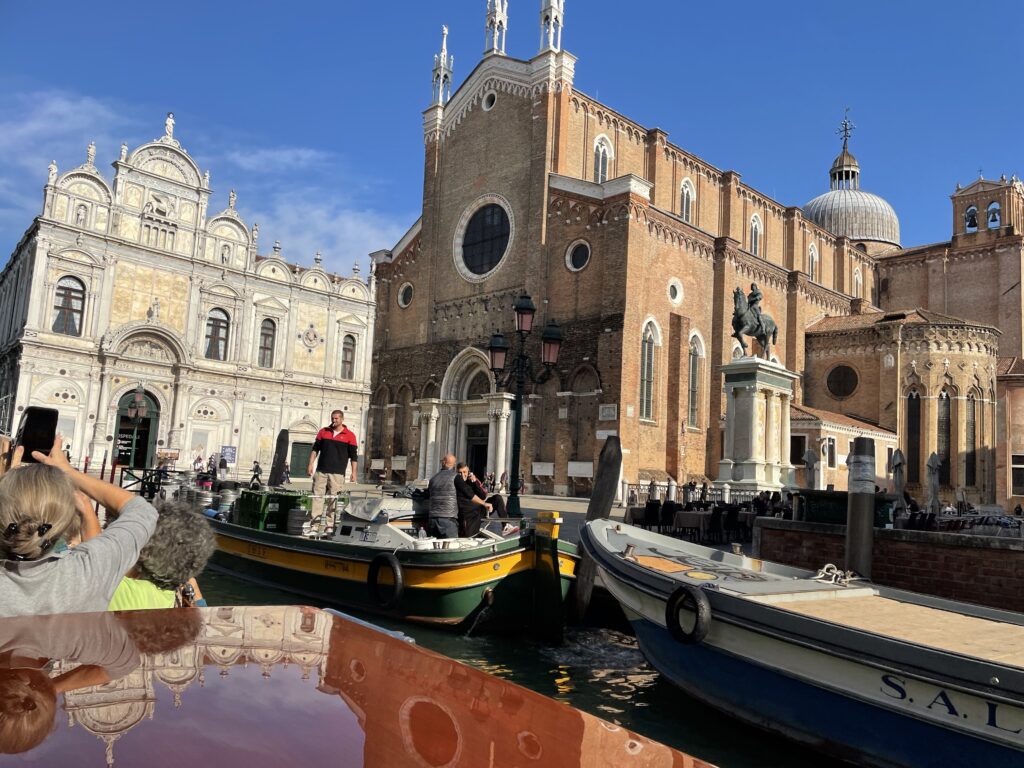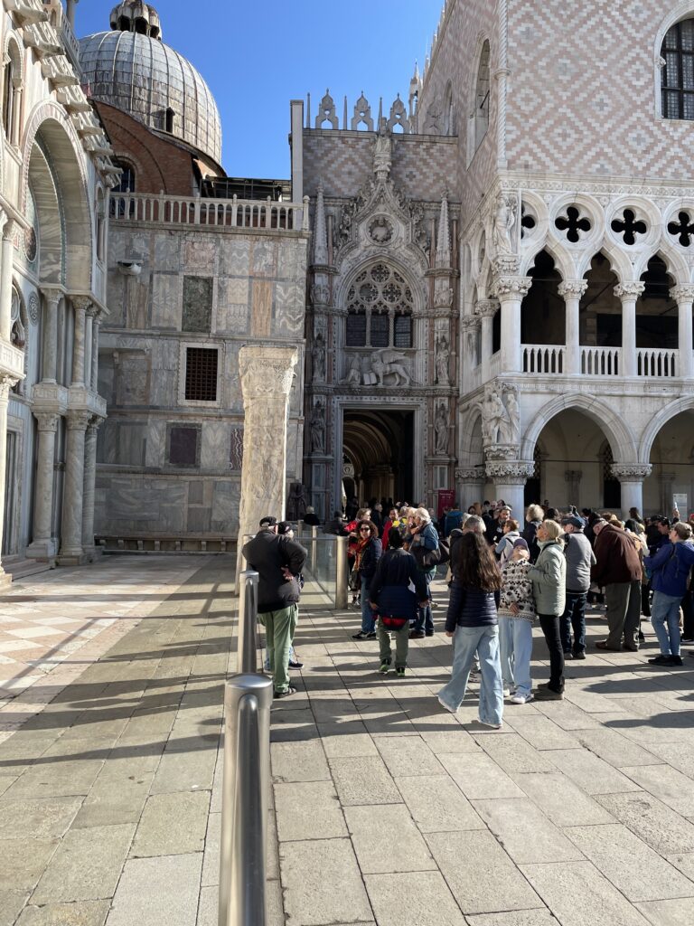 Mit dem Buss ging es nach Punta Sabbioni. Von dort mit dem Schiff zum Hafen von Venedig, Anlegestelle nahe dem Markusplatz. Dort begann ein Führung, alles im Bereich dieses Platzes, Also Dogenpalast, Dom, die Gebäude rund um den Platz.