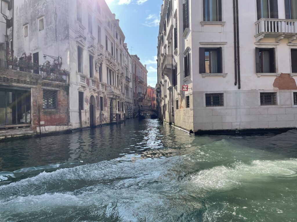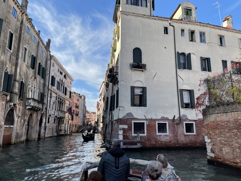 Für Mittag hatten wir eine Bootsfahrt durch die Kanäle gebucht. Das gab mal einen ganz andern Eindruck der Stadt, als das Erwandern der Brücken und Gassen. Venedig wurde auf Dutzenden Inseln gebaut, unter den Häusern ist kein Wasser, die vielen Brücken verbinden diese eng beieinanderstehenden Inseln. Einige sind weiter voneinander entfernt, wie beim Canale Grande